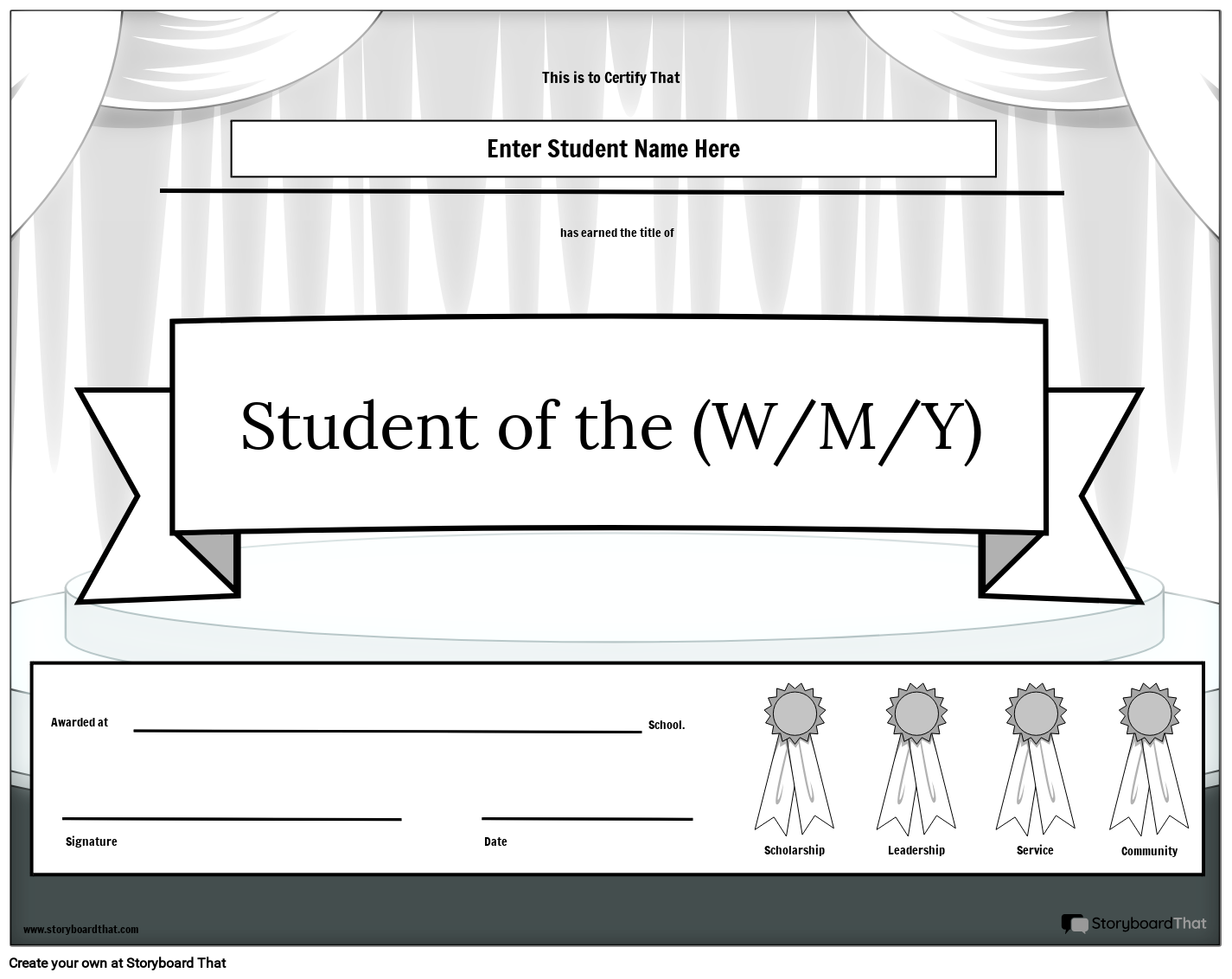 स्टूडेंट ऑफ़ द वीक, मंथ या ईयर अवार्ड। लैंडस्केप लेआउट में ब्लैक एंड व्हाइट।