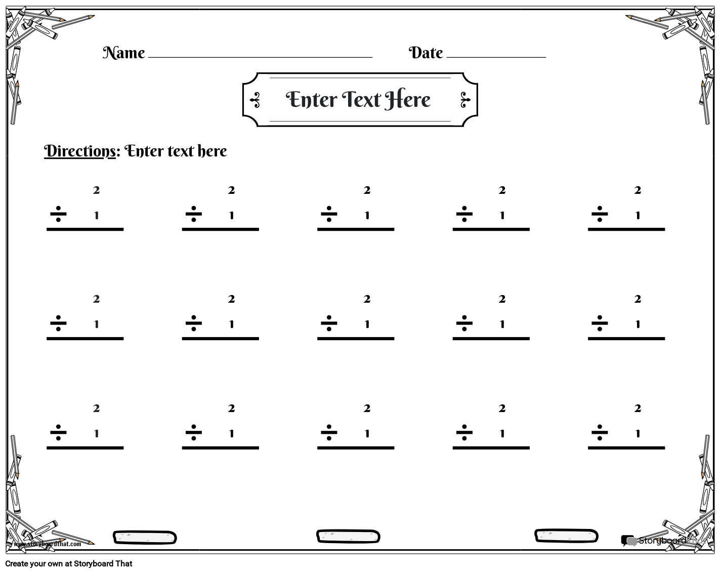 डिवीजन अभ्यास वर्कशीट। आसान मुद्रण के लिए काले और सफेद।