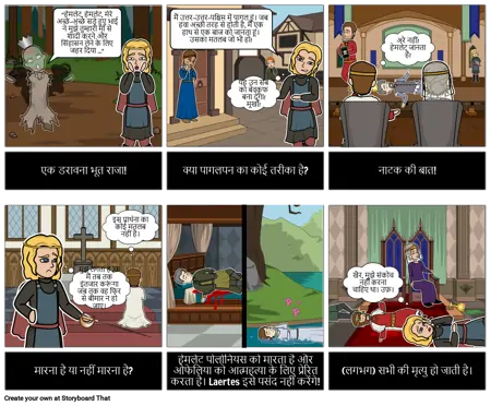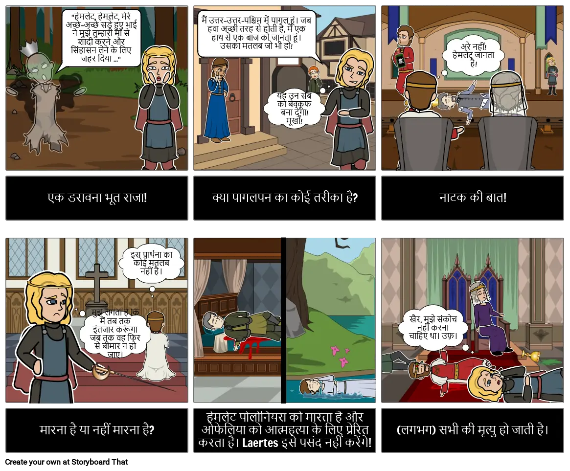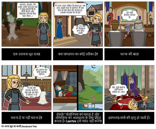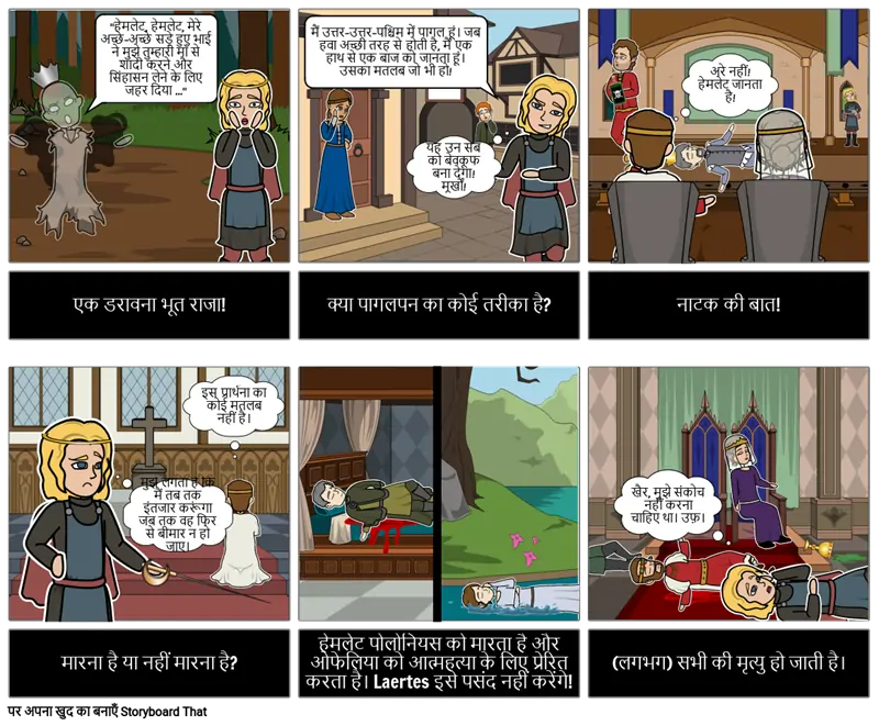 पैरोडी और व्यंग्य: हैमलेट पैरोडी स्टोरीबोर्ड। कॉमिक्स बनाकर पैरोडी और व्यंग्य सिखाएं!