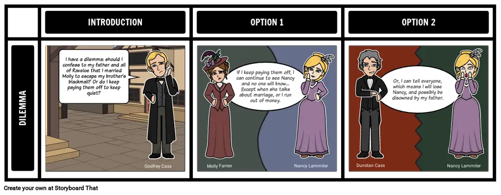 I have a dilemma: should I confess to my father and all of Raveloe that I married Molly to escape my brother's blackmail? Or do I keep paying them off to keep quiet?