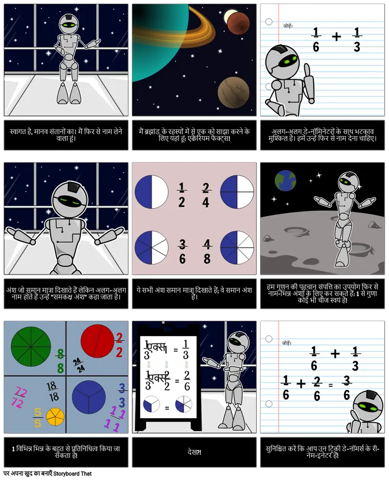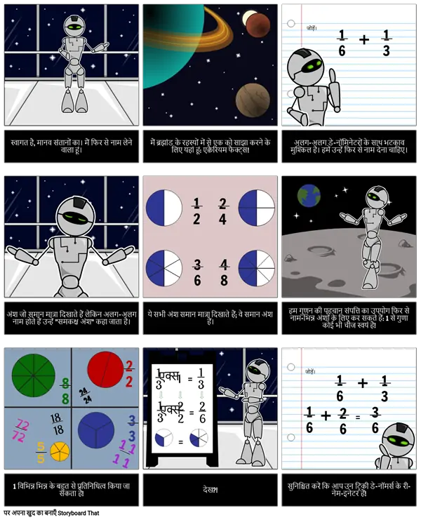• ये सभी अंश समान मात्रा दिखाते हैं; वे समान अंश हैं।