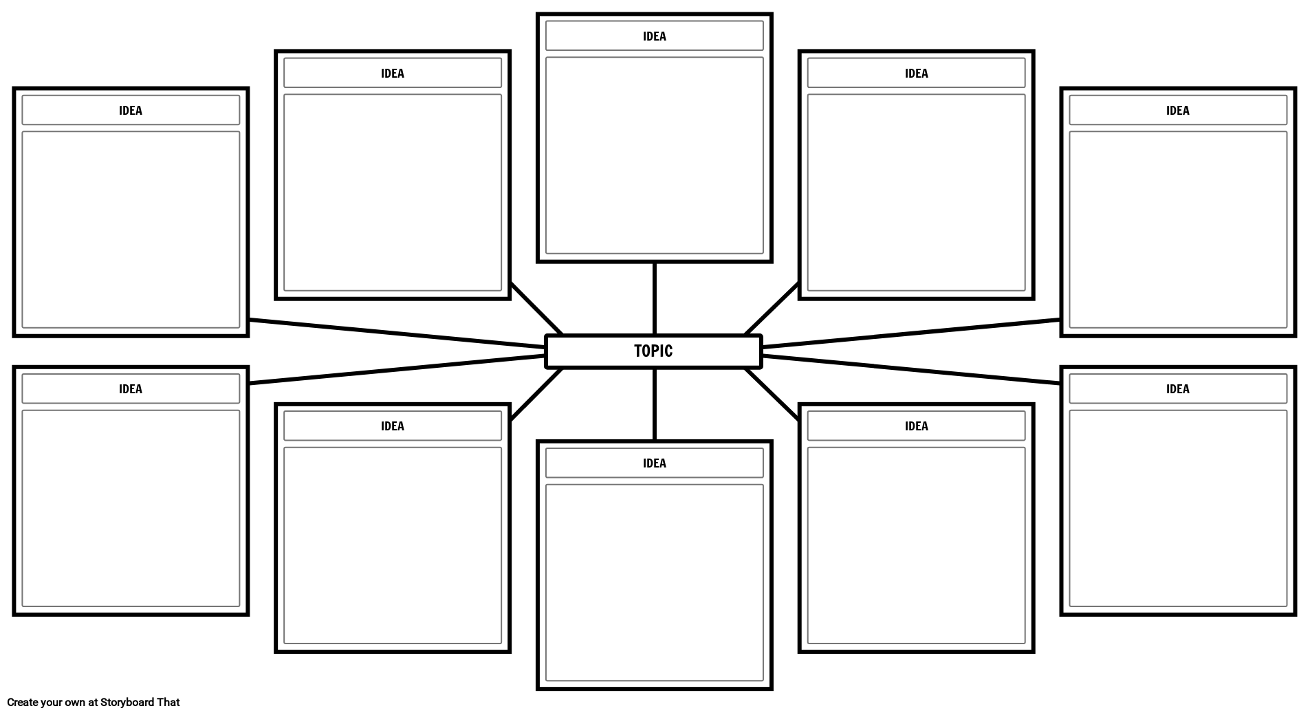 „Spider Map“ minčių šturmo šablonas - šiame vorų žemėlapyje yra dešimt langelių, kad suteiktumėte daug vietos visoms šioms idėjoms!