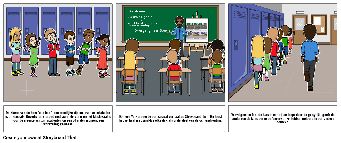 De heer Yetz creëerde een sociaal verhaal op StoryboardThat . Hij leest het verhaal met zijn klas elke dag als onderdeel van de ochtendroutine.