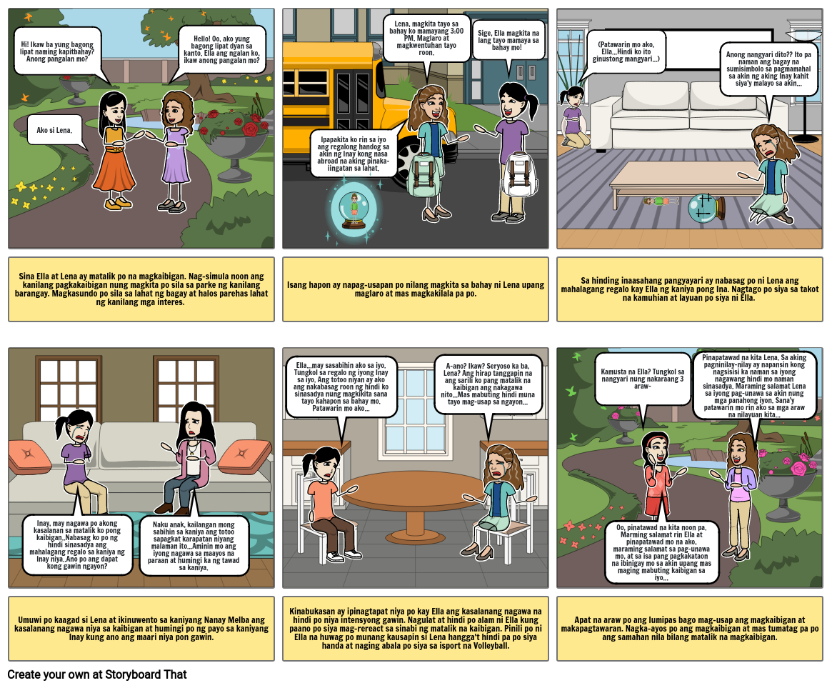 Sa hinding inaasahang pangyayari ay nabasag po ni Lena ang mahalagang regalo kay Ella ng kaniya pong Ina. Nagtago po siya sa takot na kamuhian at layuan po siya ni Ella.