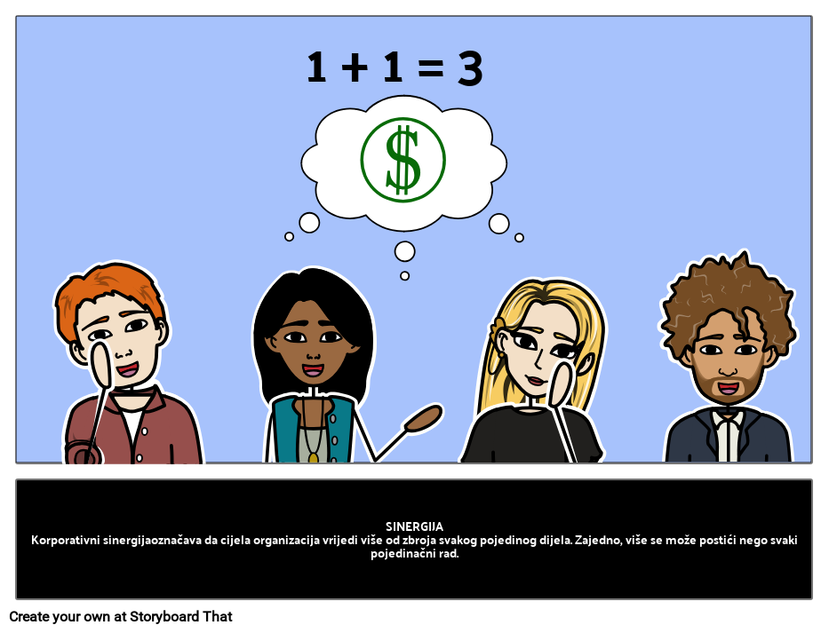 Možda je jedna od najčešćih korporativnih riječi koje danas čujemo je sinergija. Koncept korporativne sinergije je da u cjelini, iznos koji vrijedi jedna organizacija je mnogo više od zbroja svih pojedinačnih suradnika.