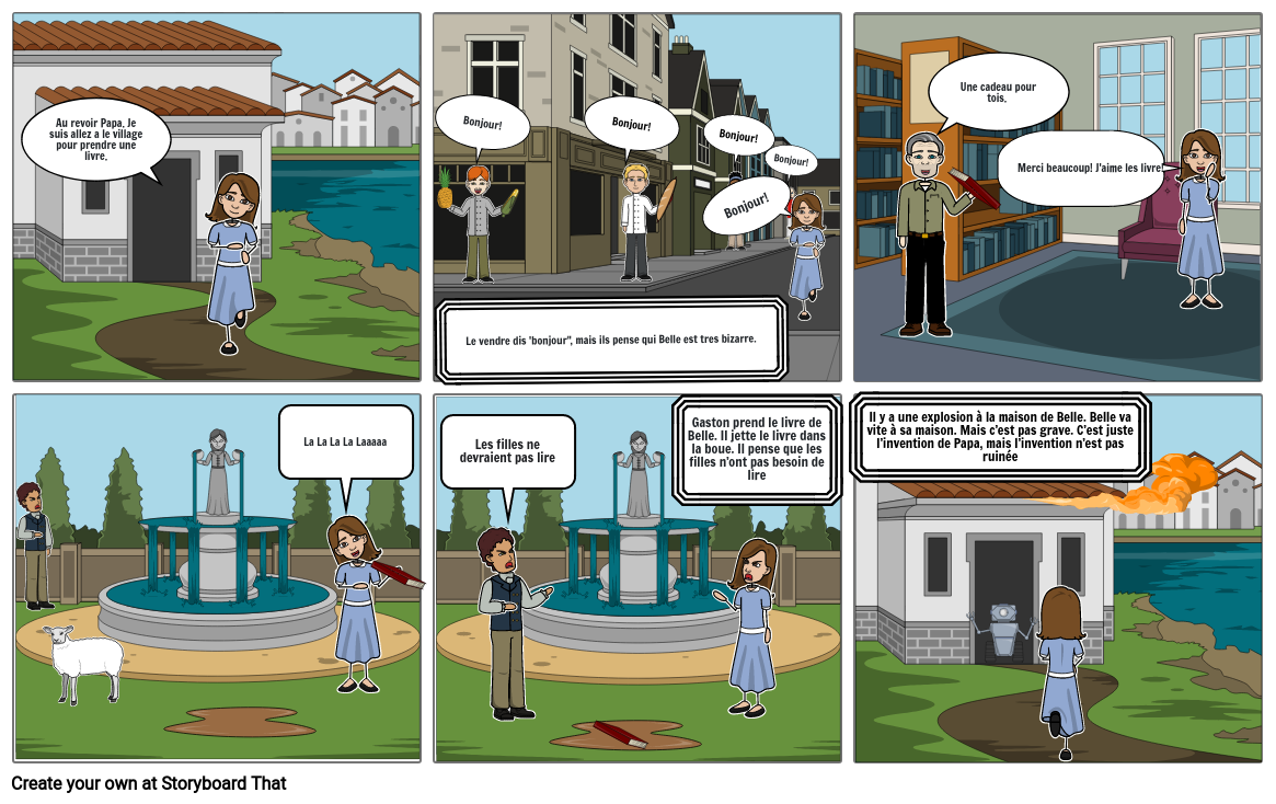 Gaston prend le livre de Belle. Il jette le livre dans la boue. Il pense que les filles n’ont pas besoin de lire