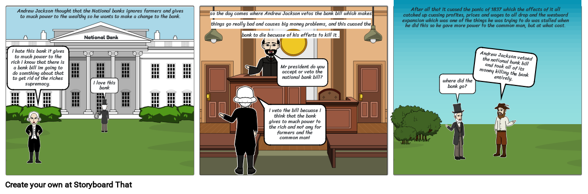 Andrew Jackson thought that the National banks ignores farmers and gives to much power to the wealthy so he wants to make a change to the bank.