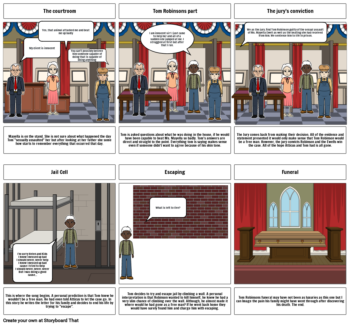 Tom Robinsons funeral may have not been as luxuries as this one but I can Image the pain his family might have went through after discovering his death. The end.