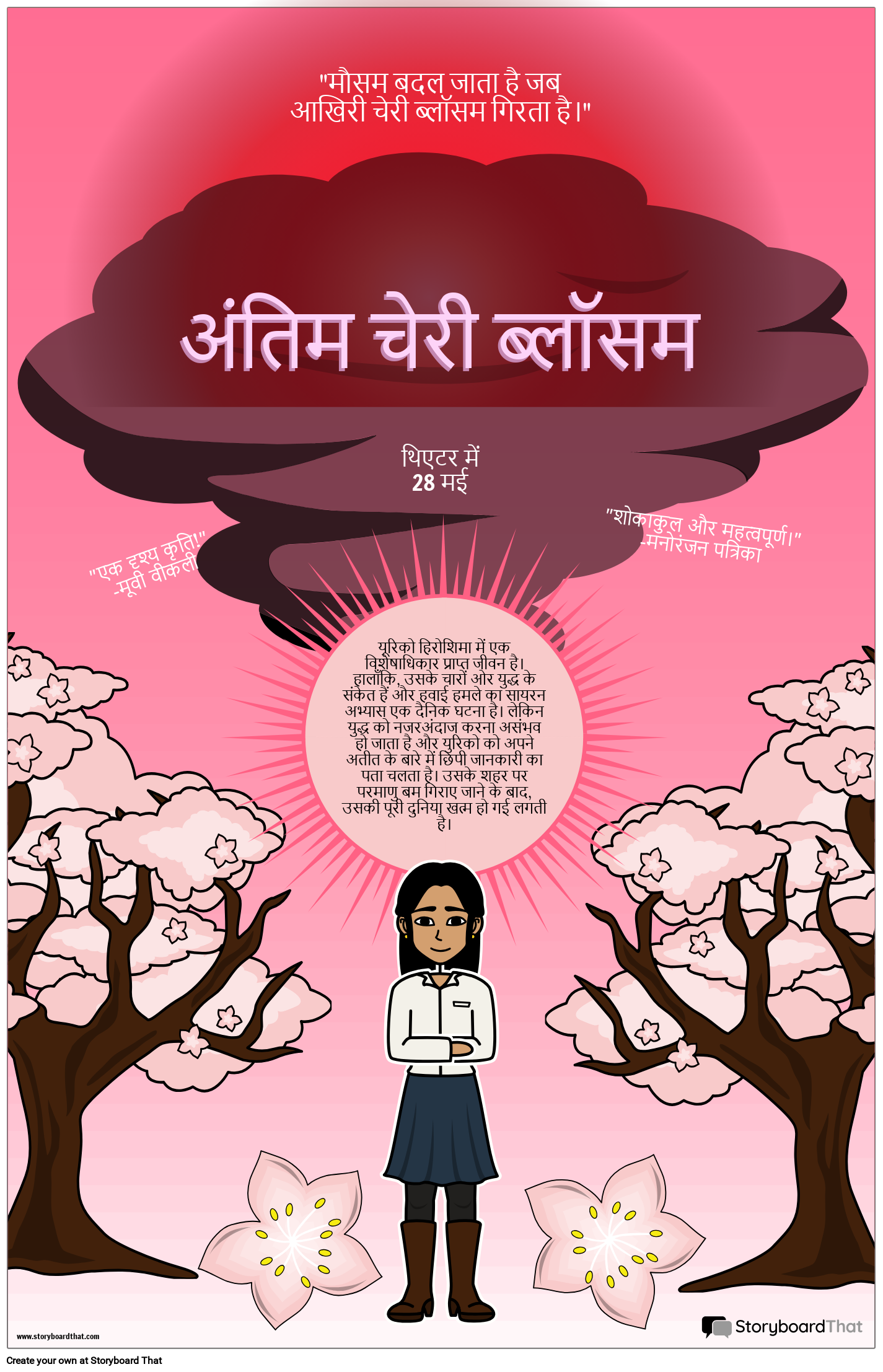 छात्र कहानी से प्रमुख दृश्यों या विषयों पर प्रकाश डालते हुए कैथलीन बुर्किनशॉ द्वारा द लास्ट चेरी ब्लॉसम के लिए एक फिल्म पोस्टर बना सकते हैं।
