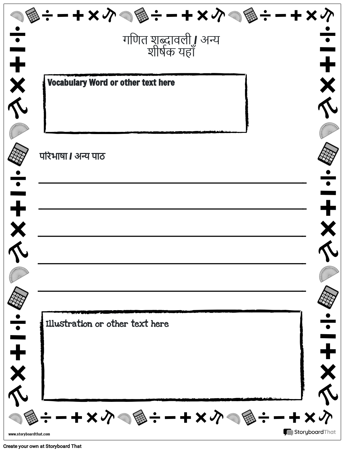 गणित शब्दावली टेम्पलेट | गणित कार्यपत्रक
