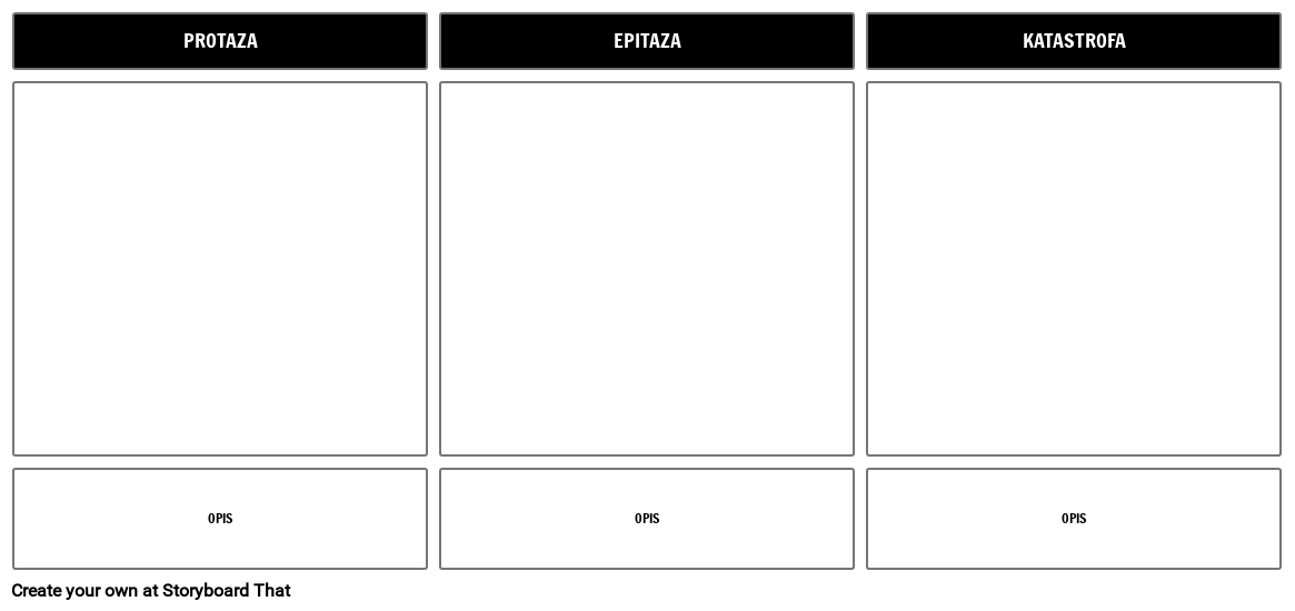 3 Predložak strukture zakona | Neka učenici identificiraju protazu, epitazu i katastrofu predstave i prikažu ih koristeći Storyboard That.