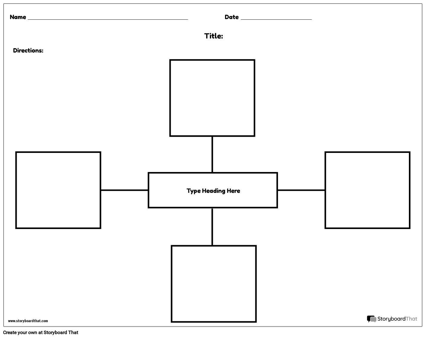 Predložak paukove karte - 4 kvadrata | Radni listovi grafičkog organizatora Spider karte