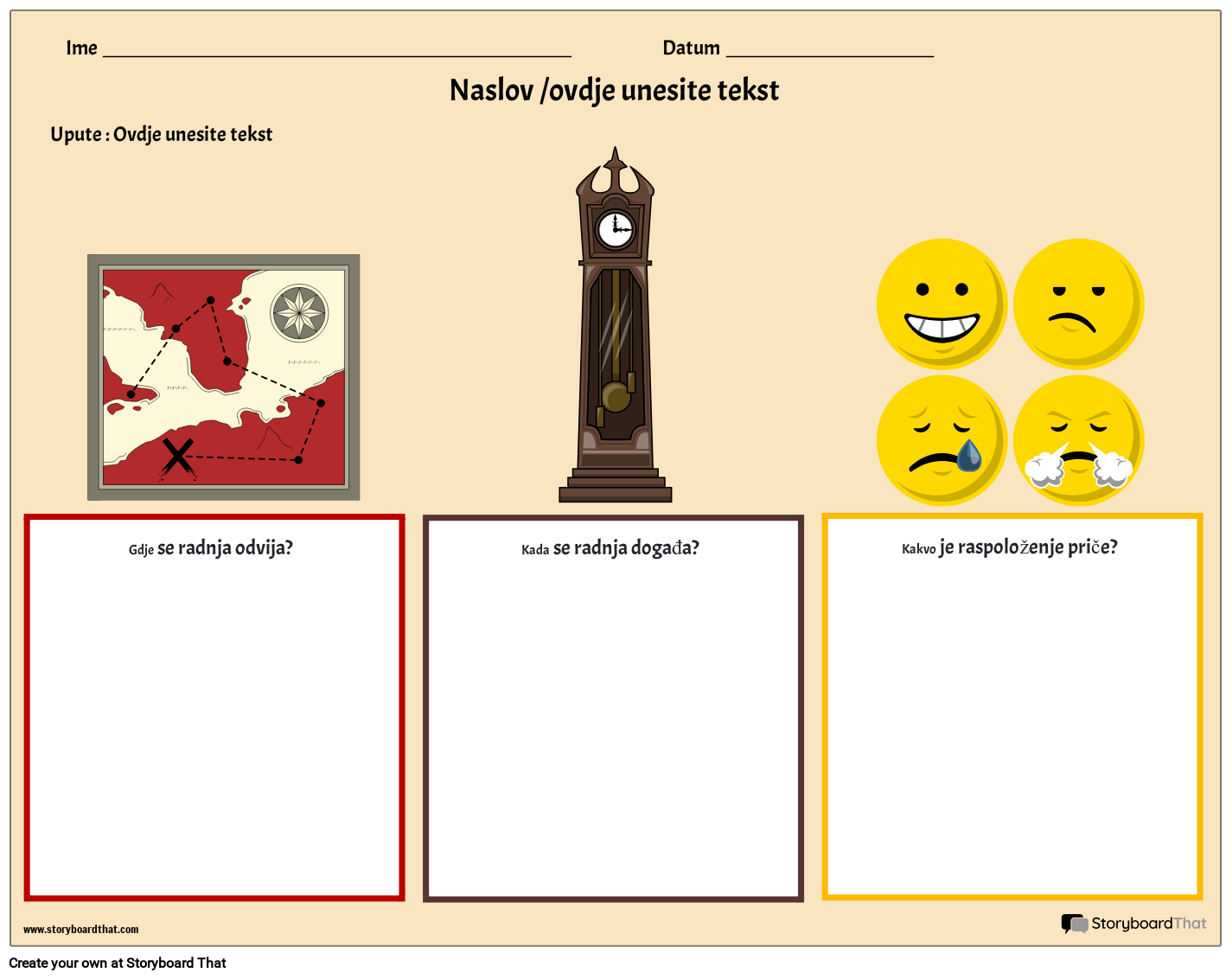Postavljanje predloška karte. Kada i gdje se radnja događa? Kakvo je raspoloženje priče?