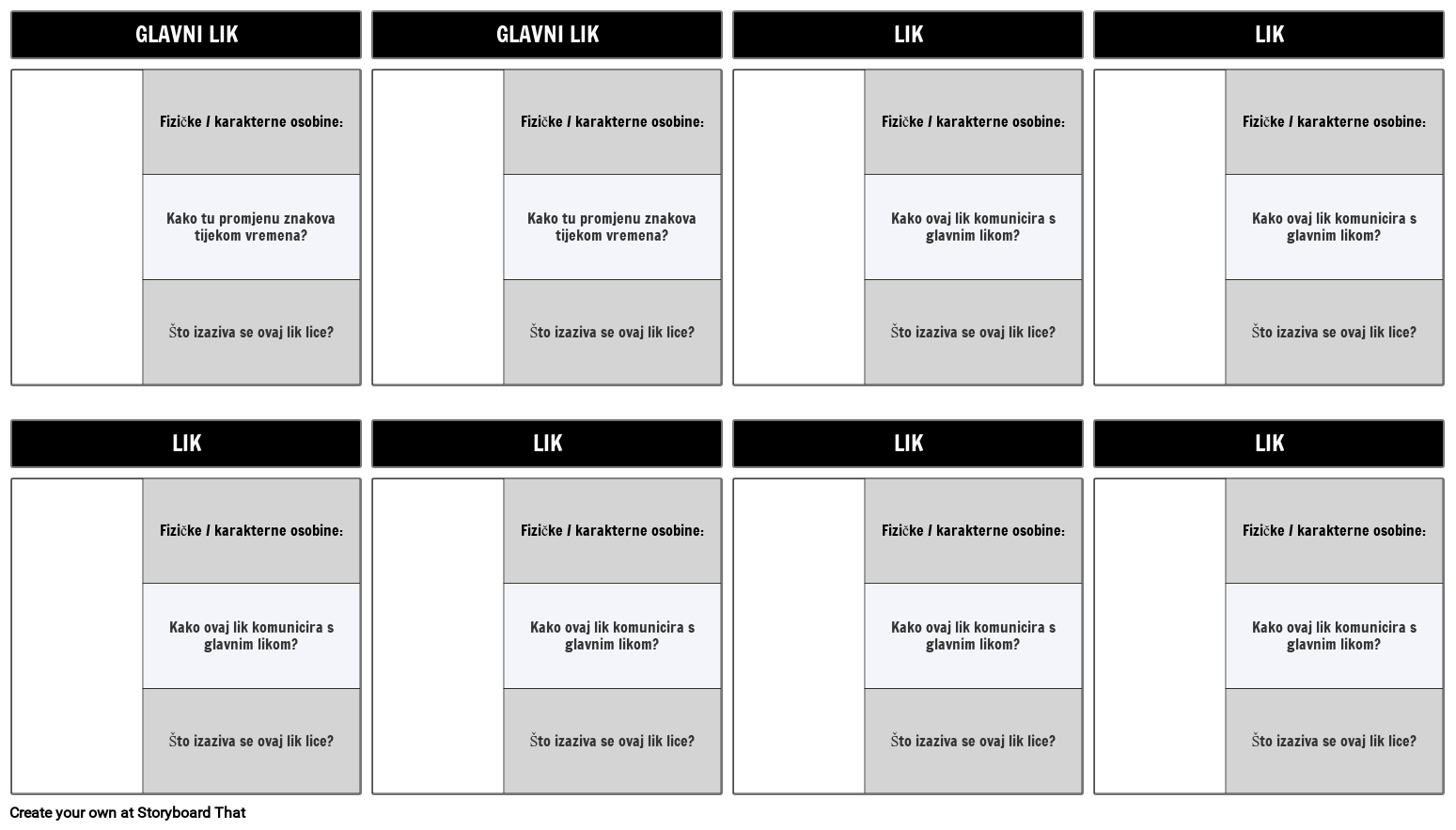 Fizičke / karakterne osobine: Kako ovaj lik komunicira s glavnim likom? Što izaziva se ovaj lik lice?