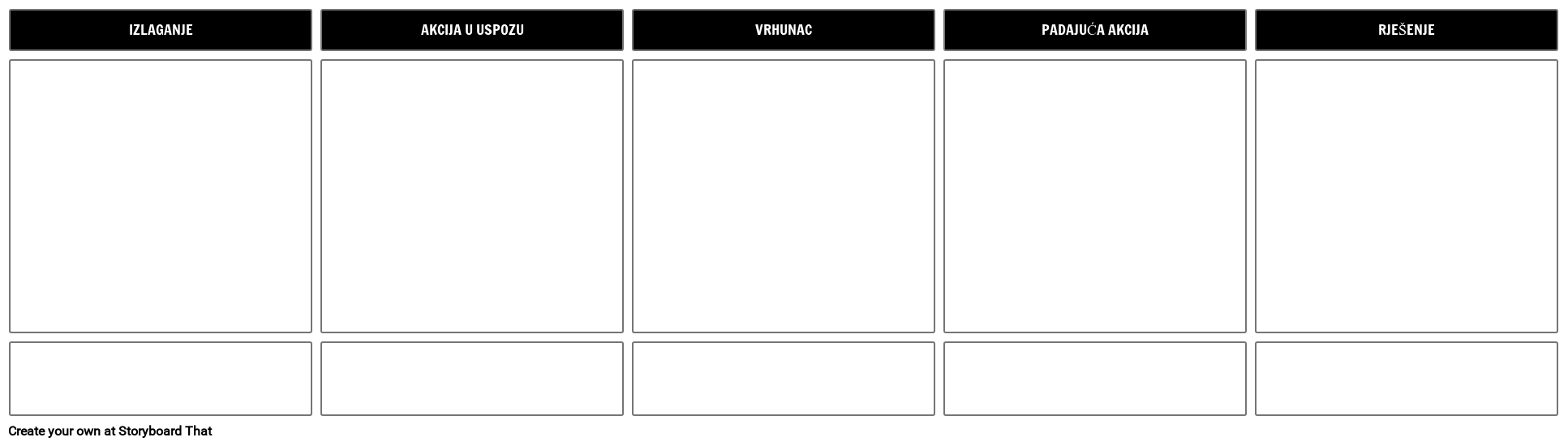Predložak dijagrama iscrtavanja - 5 ćelija | Neka učenici identificiraju i prikažu ključne događaje za svaki od pet koraka dijagrama zapleta: ekspozicija, radnja u usponu, vrhunac, radnja u padu i rezolucija