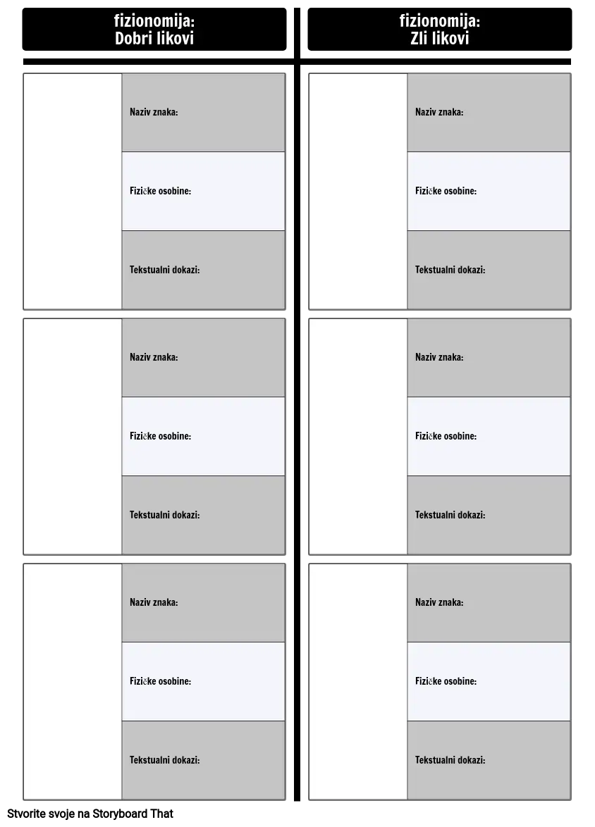 Predložak Grafikona za Usporedbu Fiziognomije