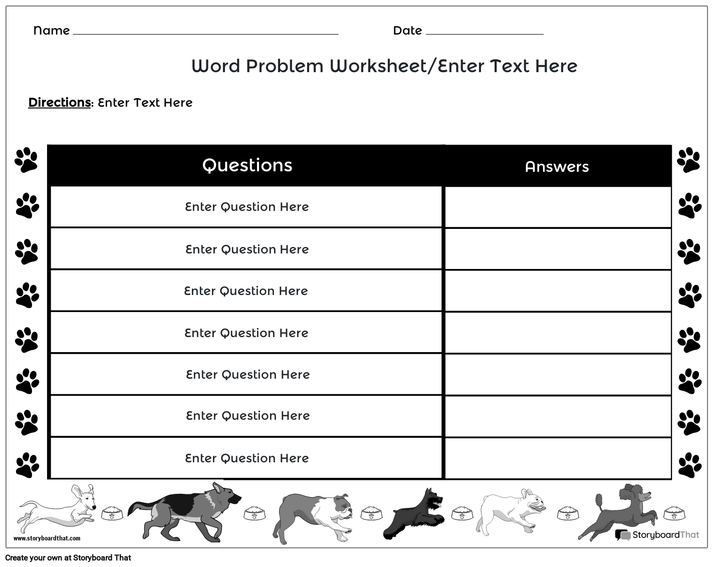 Radni list za rješavanje problema na temu psa. Unesite svoja pitanja kako biste ih prilagodili bilo kojoj jedinici učenja!