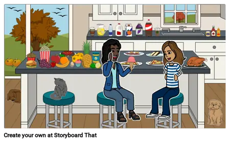 Slikovna scena za govornu terapiju koja uključuje različitu hranu. Izvrsno za vježbanje vokabulara!