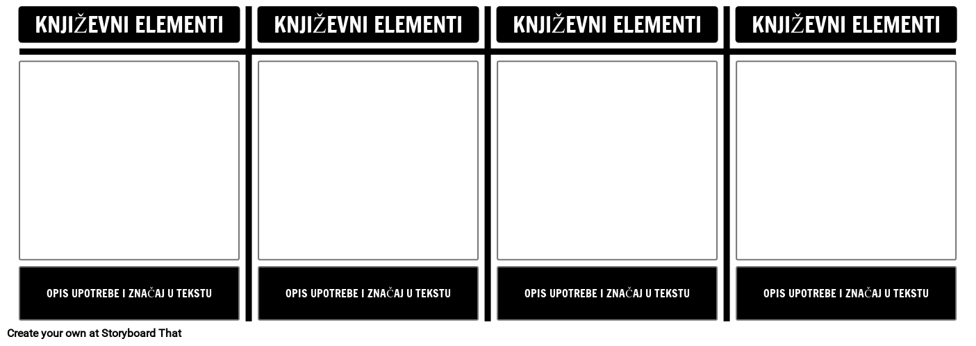 T-karta književnih elemenata - prepoznati i prikazati književne elemente koji se nalaze u tekstu. Uključi opis njegovog značenja.