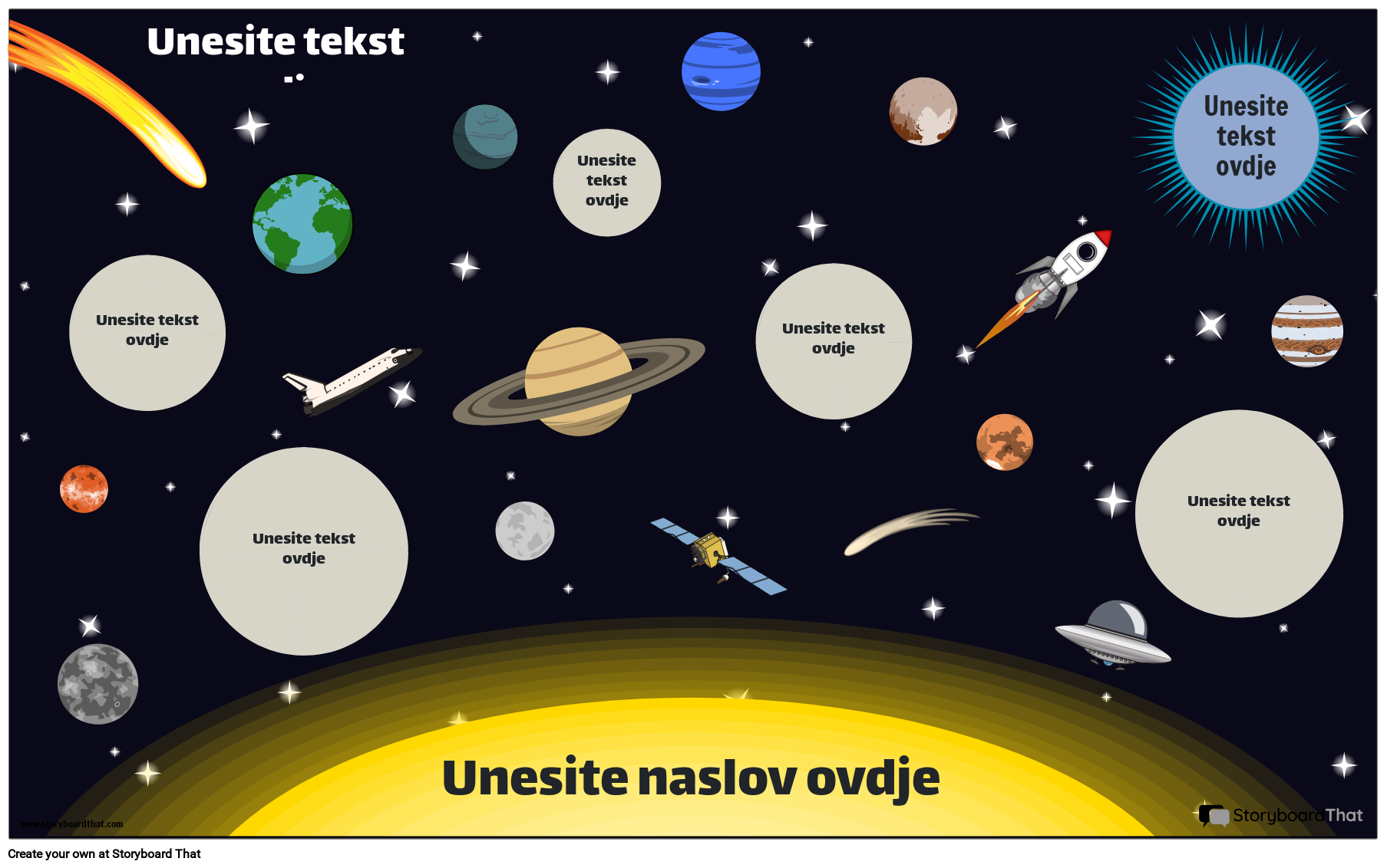 Znanstvena infografika na temu planeta i svemira koja vizualno, jezgrovito i kreativno opisuje važne činjenice o temi.