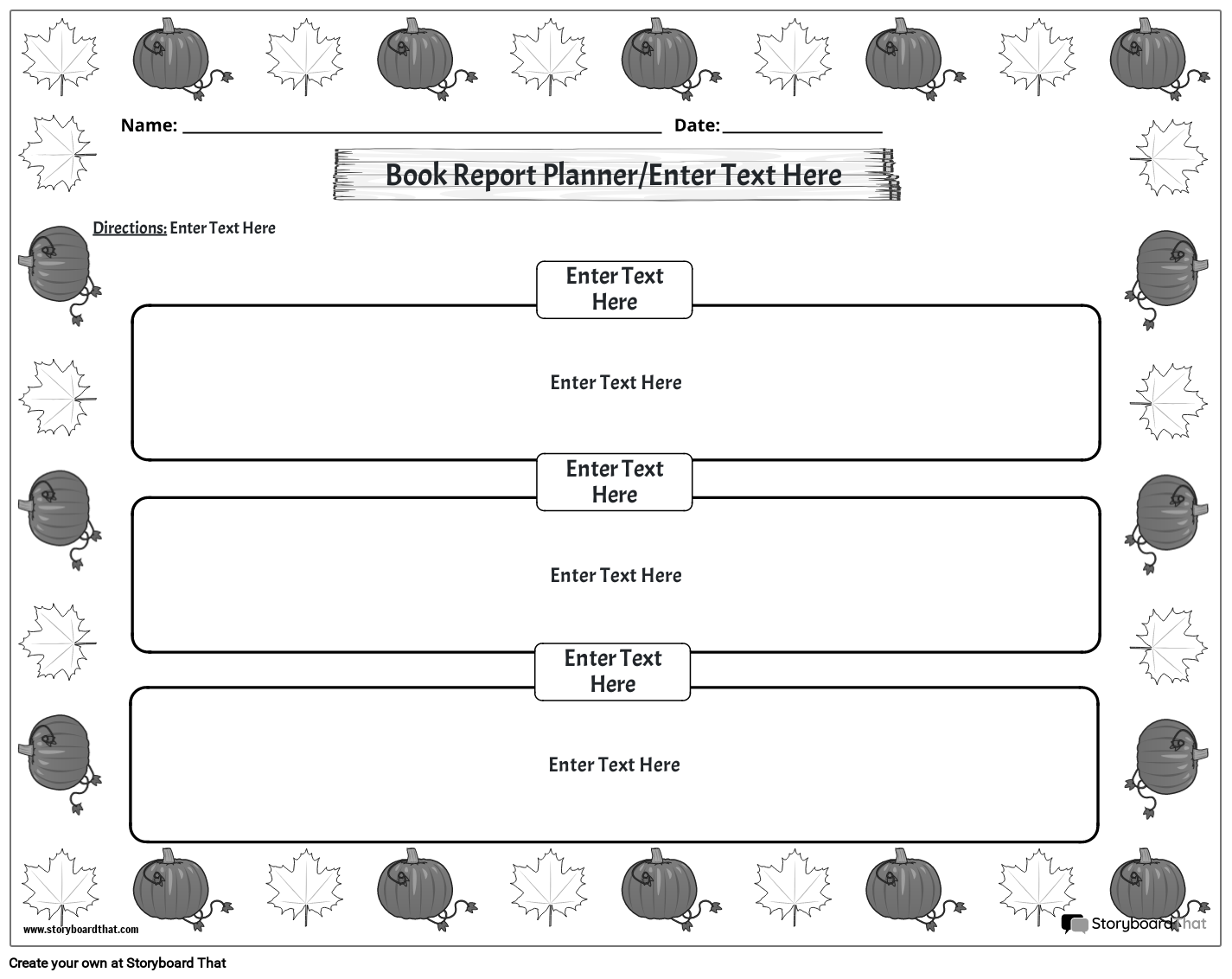 Juodos ir baltos kraštovaizdžio knygų ataskaitų planuotojas. Rudens tema, lengva redaguoti ir spausdinti.
