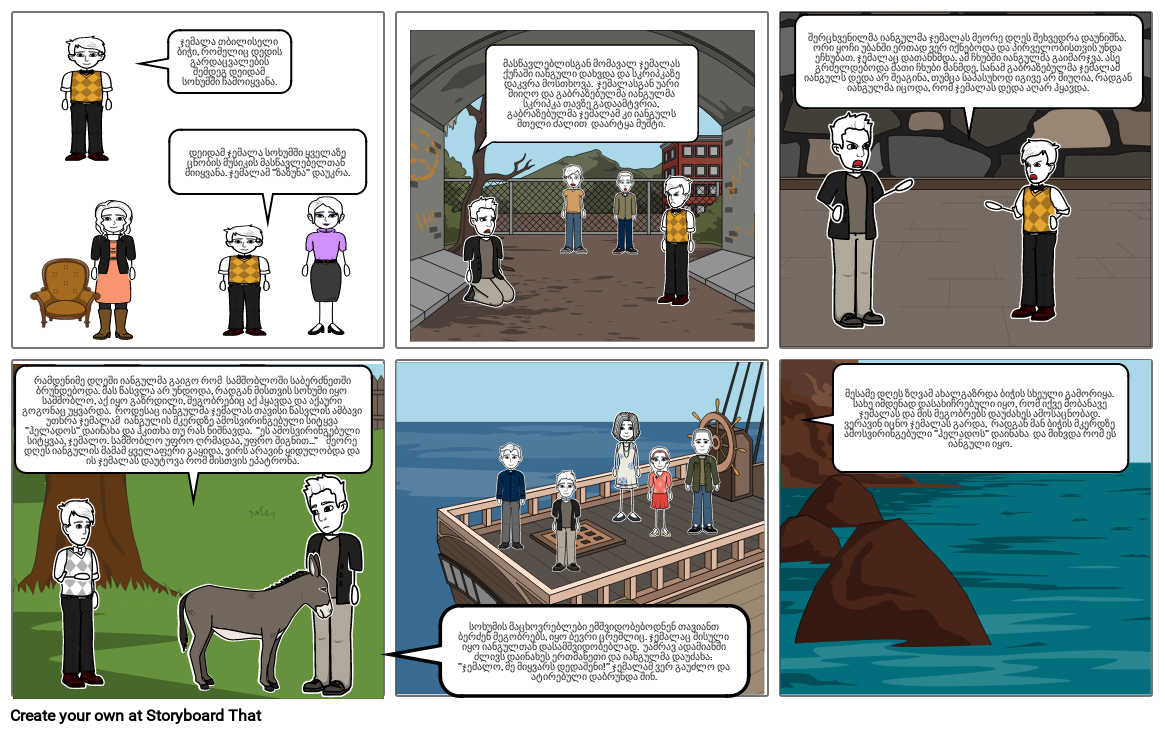 რამდენიმე დღეში იანგულმა გაიგო რომ  სამშობლოში საბერძნეთში ბრუნდებოდა. მას წასვლა არ უნდოდა, რადგან მისთვის სოხუმი იყო  სამშობლო, აქ იყო გაზრდილი, მეგობრებიც აქ ჰყავდა და აქაური გოგონაც უყვარდა.  როდესაც იანგულმა ჯემალას თავისი წასვლის ამბავი უთხრა ჯემალამ  იანგულის მკერდზე ამოსვირინგებული სიტყვა "ჰელადოს" დაინახა და ჰკითხა თუ რას ნიშნავდა.  "ეს ამოსვირინგებული სიტყვაა, ჯემალო. სამშობლო უფრო ღრმადაა, უფრო შიგნით..."    მეორე დღეს იანგულის მამამ ყველაფერი გაყიდა, ვირს არავინ ყიდულობდა და ის ჯემალას დაუტოვა რომ მისთვის ეპატრონა.