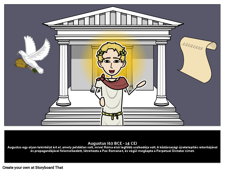 Augusztus volt az első római császár, aki Kr. e. 27-től Kr. u. 14-ig uralkodott. Ő alakította át Rómát köztársaságból birodalommá, elindítva egy hosszú békeidőszakot, amit Pax Romana néven ismerünk, és megalapozta a későbbi római uralkodók helyzetét.