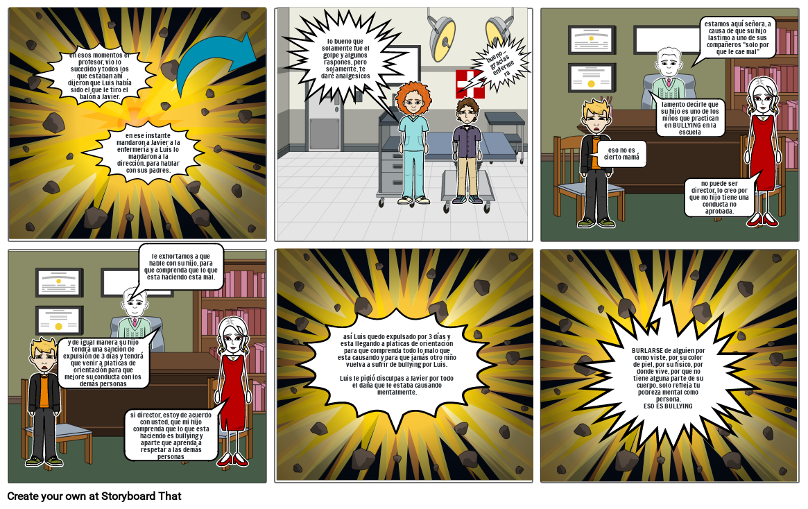 en ese instante mandaron a Javier a la enfermería y a Luis lo mandaron a la dirección. para hablar con sus padres.