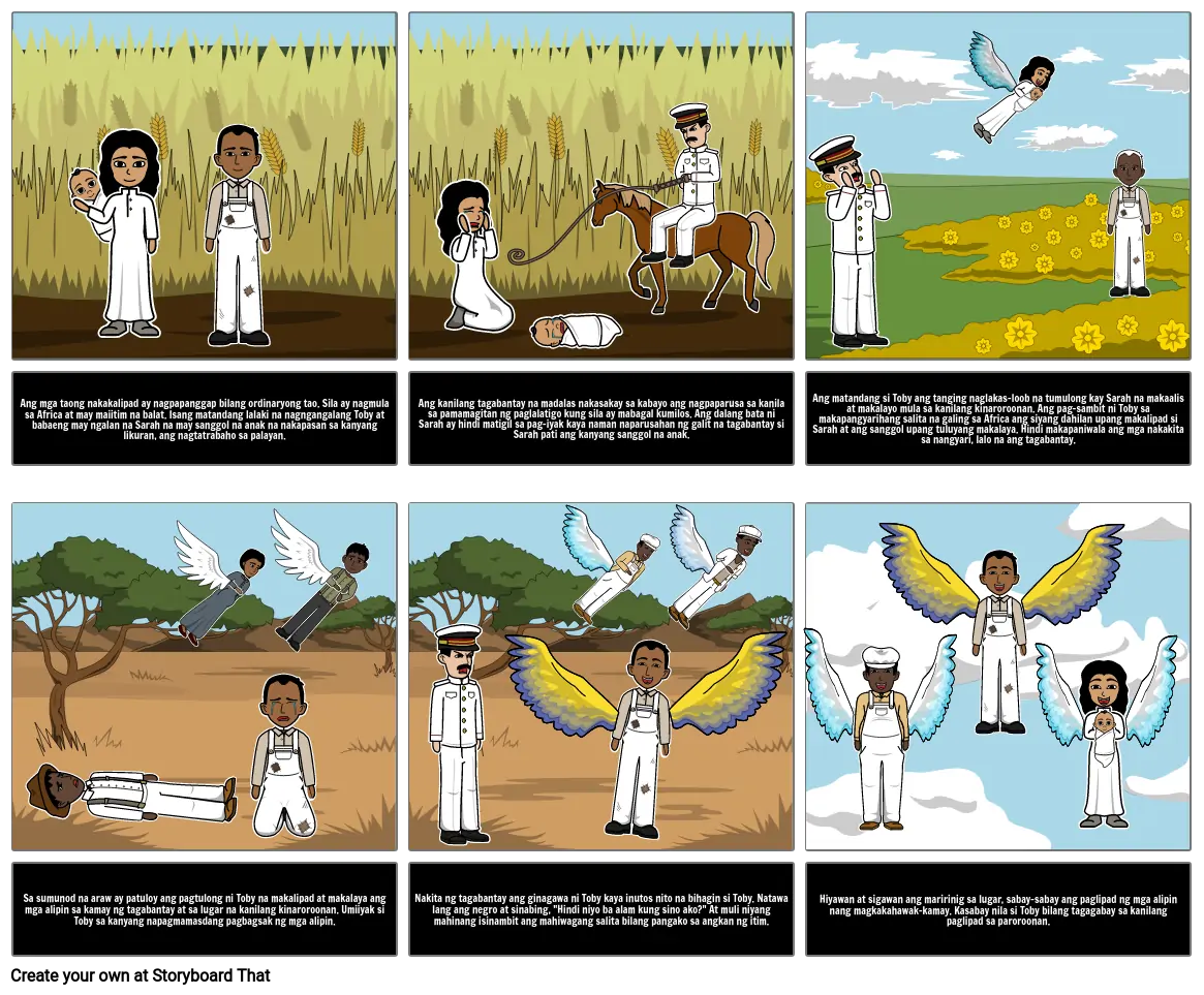 Sa sumunod na araw ay patuloy ang pagtulong ni Toby na makalipad at makalaya ang mga alipin sa kamay ng tagabantay at sa lugar na kanilang kinaroroonan. Umiiyak si Toby sa kanyang napagmamasdang pagbagsak ng mga alipin.