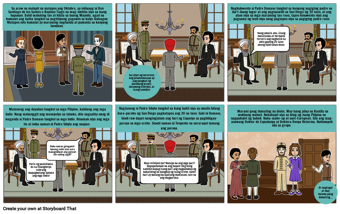 Marami pang dumating na bisita. May isang pilay na Kastila na mukhang mabait. Nakakapit siya sa bisig ng isang Pilipina na nagpakulot ng buhok. Naka-make-up at suot-European. Sila ang mag-asawang Doktor de Espadanya at Doktora Donya Victorina. Nakiumpok sila sa grupo.