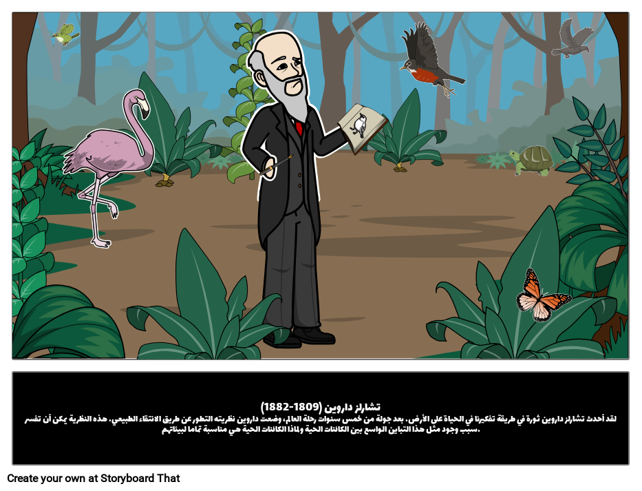 تشارلز داروين (1809-1882) لقد أحدث تشارلز داروين ثورة في طريقة تفكيرنا في الحياة على الأرض. بعد جولة من خمس سنوات رحلة العالم، وضعت داروين نظريته التطور عن طريق الانتقاء الطبيعي. هذه النظرية يمكن أن تفسر سبب وجود مثل هذا التباين الواسع بين الكائنات الحية ولماذا الكائنات الحية هي مناسبة تماما لبيئاتهم.