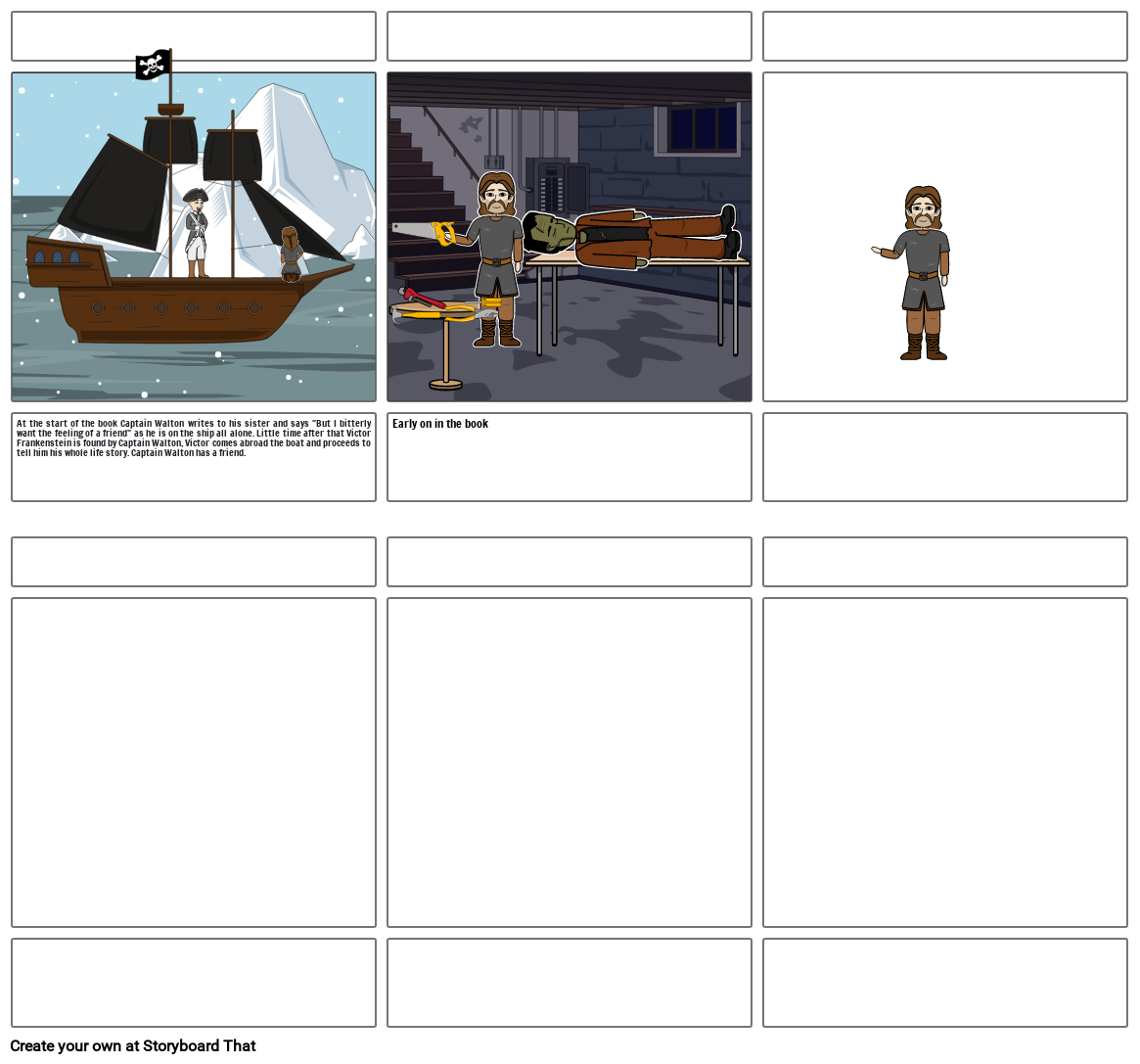 At the start of the book Captain Walton writes to his sister and says But I bitterly want the feeling of a friend as he is on the ship all alone. Little time after that Victor Frankenstein is found by Captain Walton, Victor comes abroad the boat and proceeds to tell him his whole life story. Captain Walton has a friend.