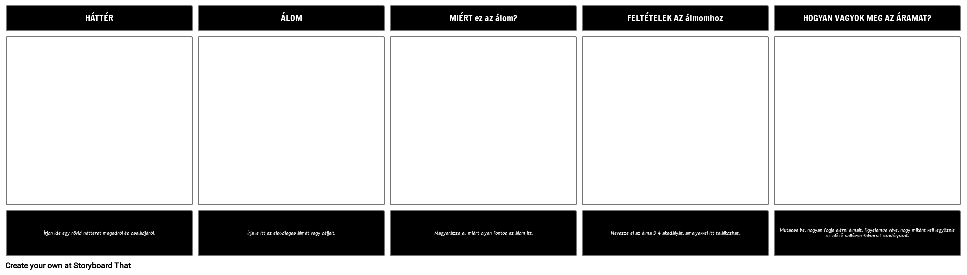 Mutassa be, hogyan fogja elérni álmait, figyelembe véve, hogy miként kell legyőznie az előző cellában felsorolt akadályokat.