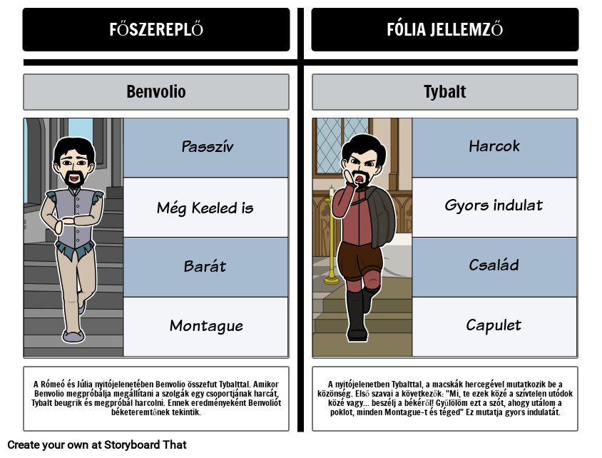 Fólia karakterek tanulói tevékenység. Példa a Rómeó és Júlia fóliaszereplőire.