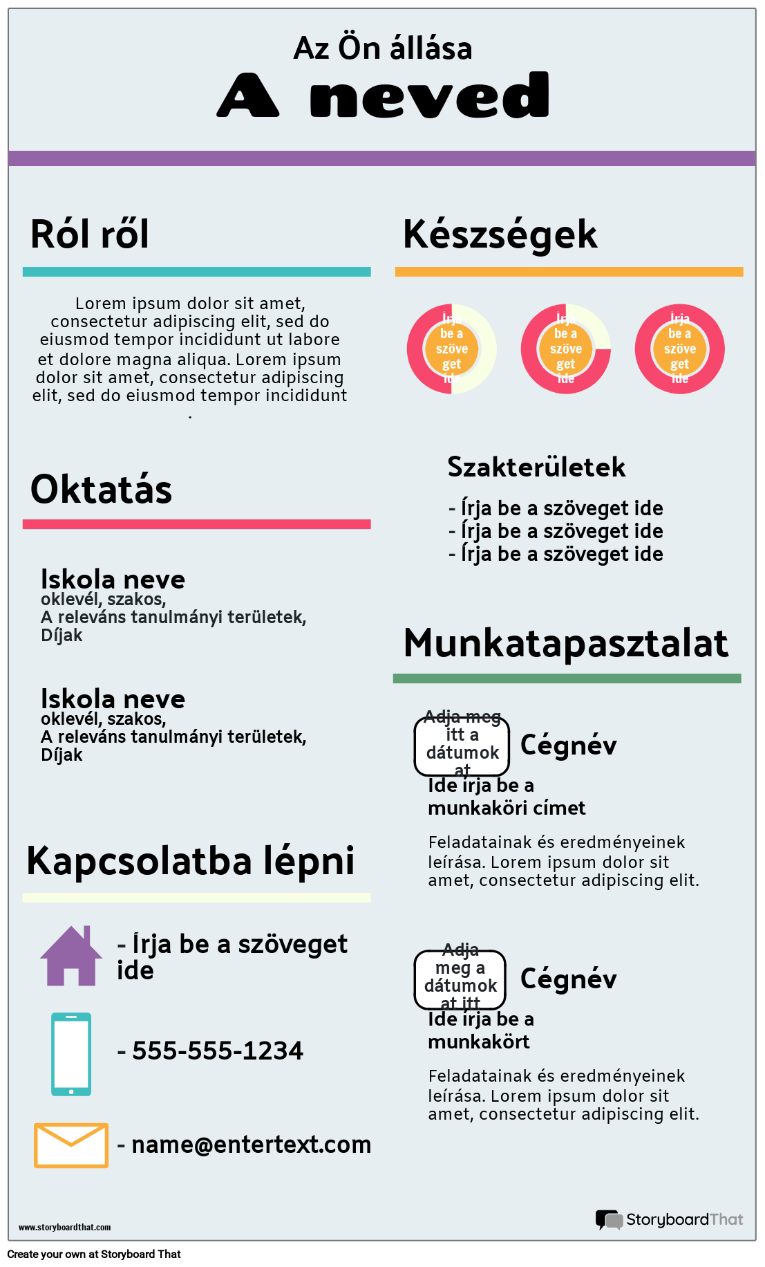 Hozzon létre önéletrajzi infografikát | Az egyéni önéletrajz-infógrafikus sablonok megkönnyítik a készségek bemutatását vagy az önéletrajz-írás gyakorlását