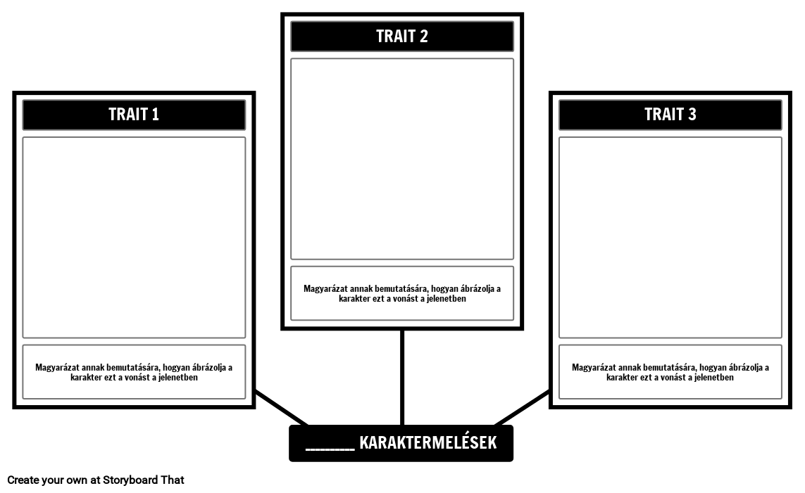 Karakter-sablon egy póktérképen. Határozzon meg három karakterjellemzőt, és ábrázolja azokat egy forgatókönyvben.