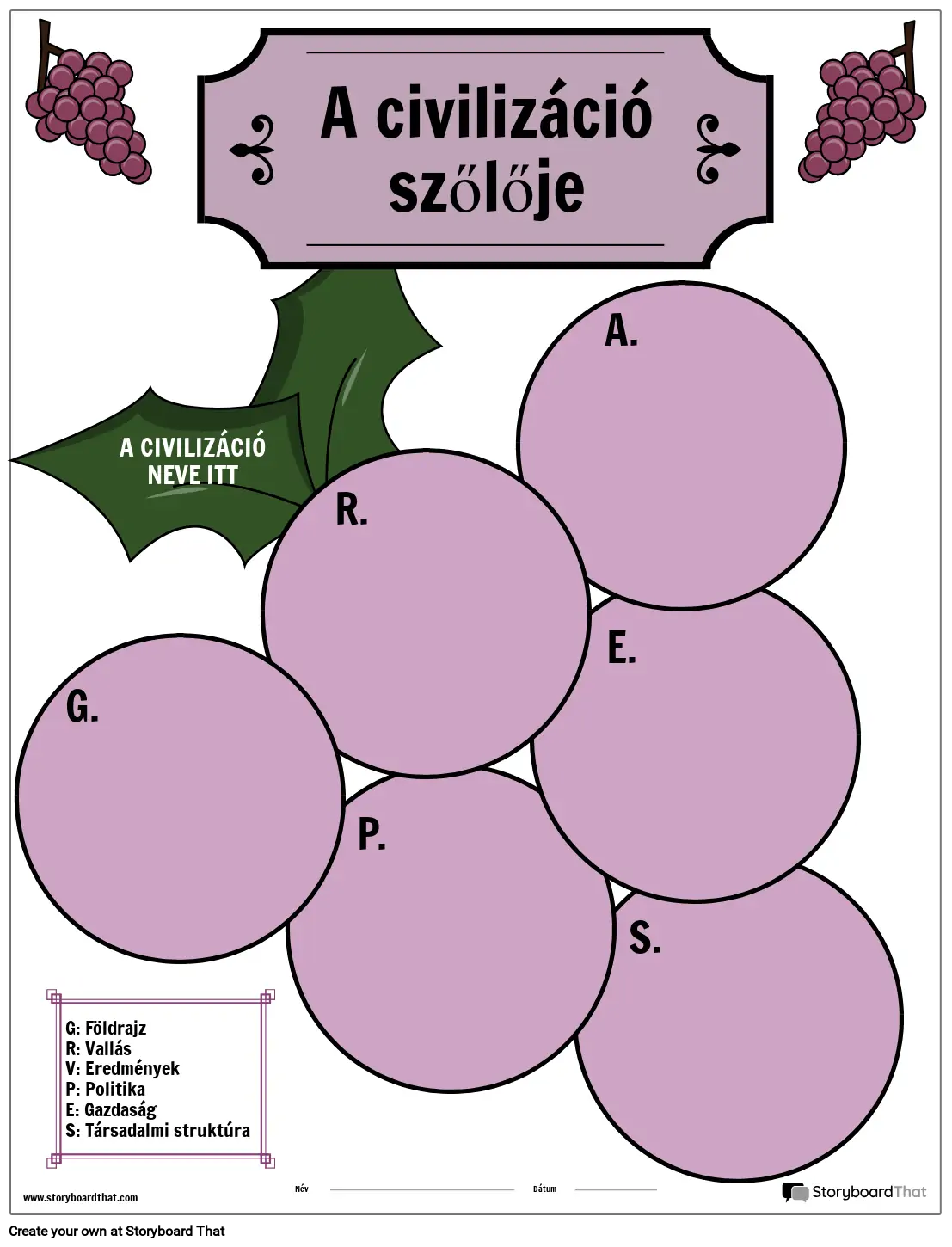 Az ókori civilizációkat általában a következő kulcsterületekre összpontosítva tanítják: Földrajz, vallás, eredmények, politika, gazdaság és társadalmi struktúra a GRAPES betűszó használatával. A mozaikszó használatával a tanulók csoportosíthatják eredményeiket, és összehasonlíthatják és szembeállíthatják a különböző civilizációkat.