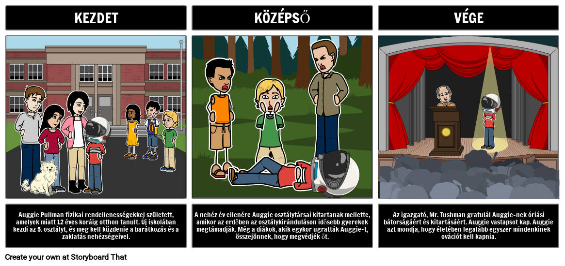 Az igazgató, Mr. Tushman gratulál Auggie-nek óriási bátorságáért és kitartásáért. Auggie vastapsot kap. Auggie azt mondja, hogy életében legalább egyszer mindenkinek ovációt kell kapnia.
