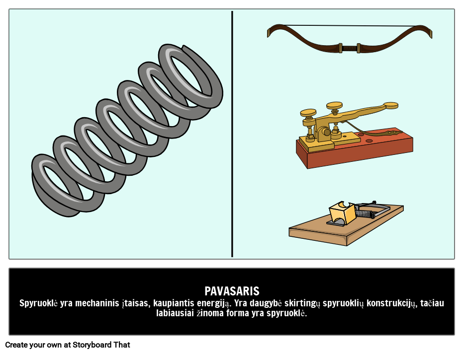 PAVASARIS Spyruoklė yra mechaninis įtaisas, kaupiantis energiją. Yra daugybė skirtingų spyruoklių konstrukcijų, tačiau labiausiai žinoma forma yra spyruoklė.