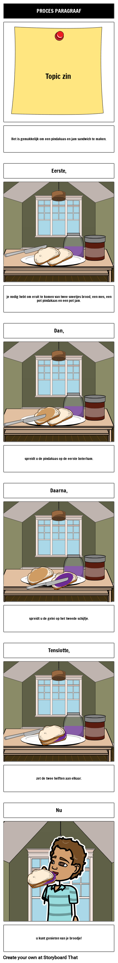 je nodig hebt om eruit te komen van twee sneetjes brood, een mes, een pot pindakaas en een pot jam.