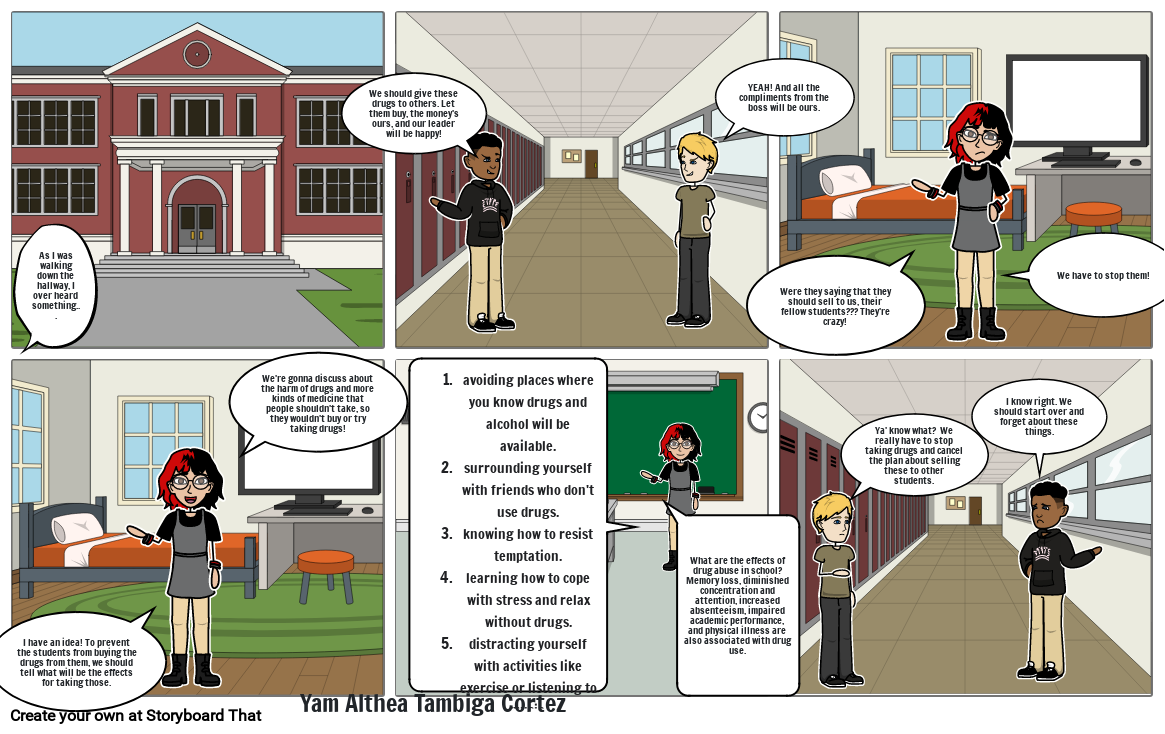 I have an idea! To prevent the students from buying the drugs from them, we should tell what will be the effects for taking those.