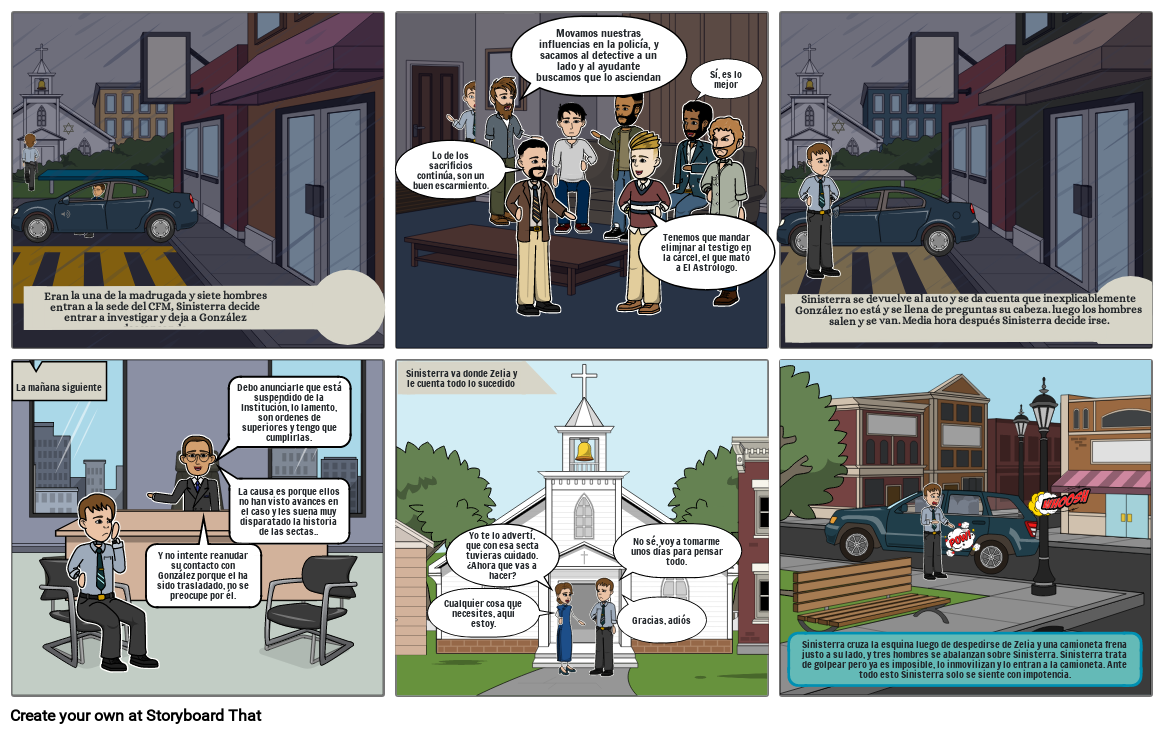 Sinisterra se devuelve al auto y se da cuenta que inexplicablemente González no está y se llena de preguntas su cabeza. luego los hombres salen y se van. Media hora después Sinisterra decide irse.