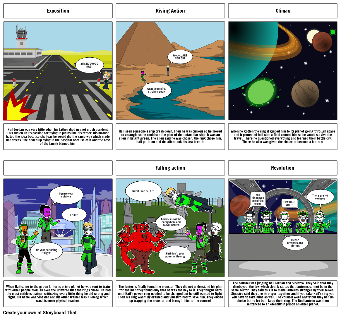The lanterns finally found the monster. They did not understand his plan for the man they found only that he was the key to it. They fought hard until Hail's power ring needed to be charged but he still wanted to fight. Then his ring was fully drained and Sinestro had to save him. They ended up trapping the monster and brought him to the counsel.