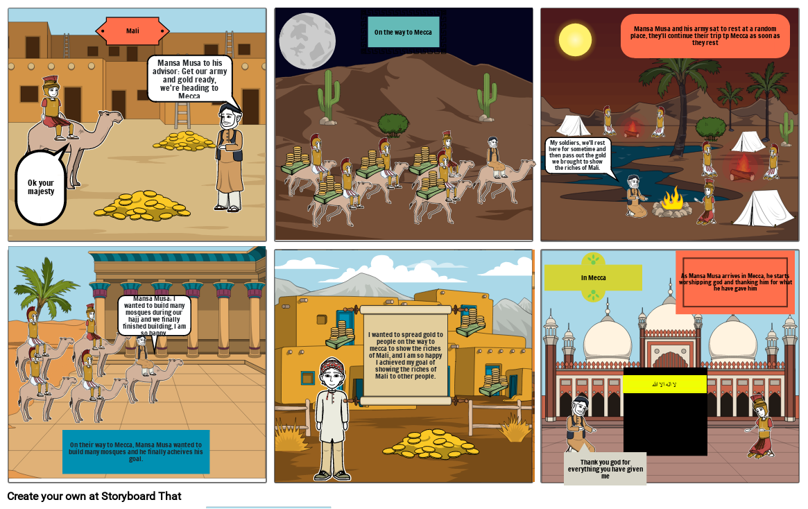 As Mansa Musa arrives in Mecca, he starts worshipping god and thanking him for what he have gave him