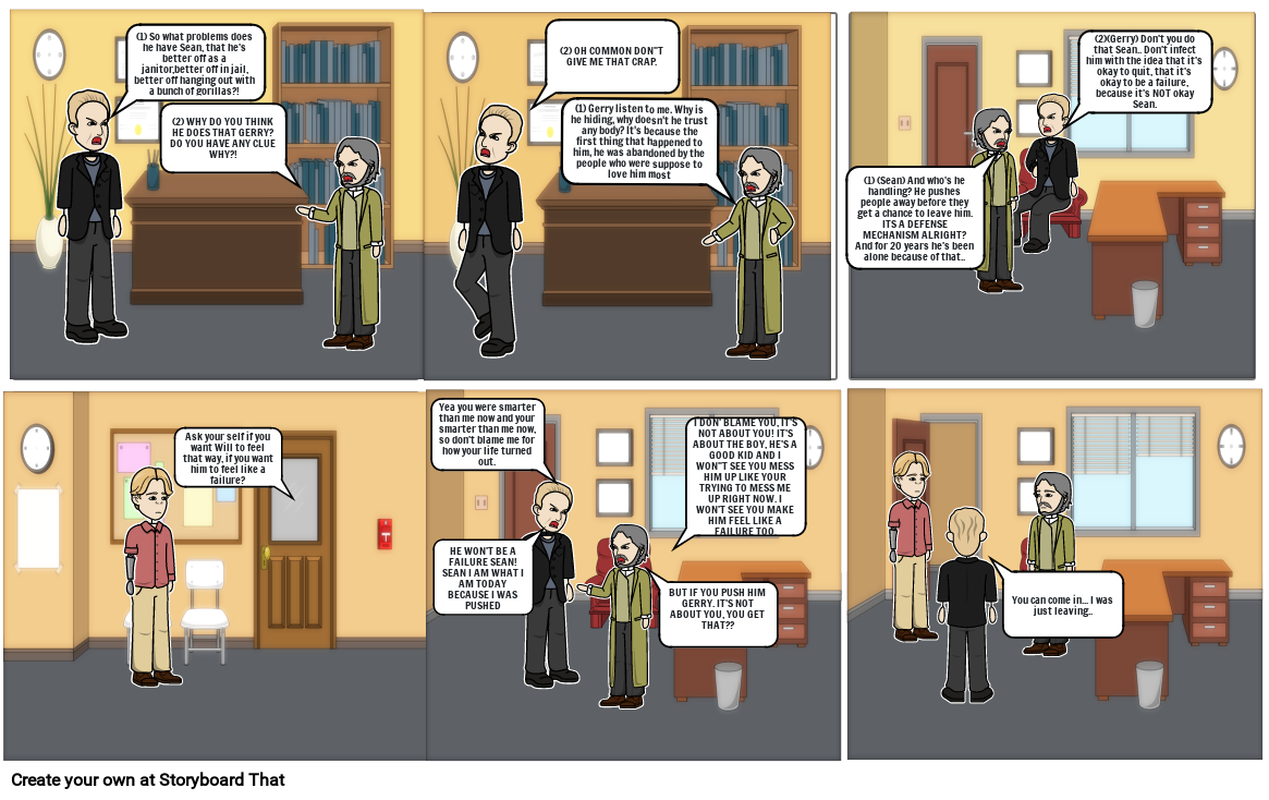 (1) (Sean) And who's he handling? He pushes people away before they get a chance to leave him. ITS A DEFENSE MECHANISM ALRIGHT? And for 20 years he's been alone because of that..