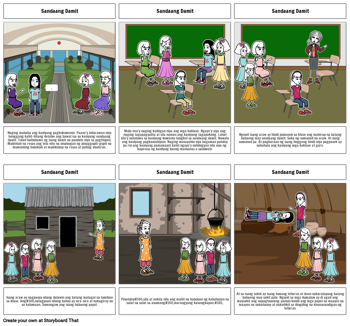 Mula noo’y naging kaibigan niya ang mga kaklase. Ngayo’y siya ang naging tagapagsalita at sila naman ang kaniyang tagapakinig. Lahat sila’y natutuwa sa kaniyang kuwento tungkol sa sandaang damit. Nawala ang kaniyang pagkamahiyain. Naging masayahin siya bagaman patuloy pa rin ang kaniyang pamamayat kahit ngayo’y nabibigyan nila siya ng kapiraso ng kanilang baong mansanas o sandwich.