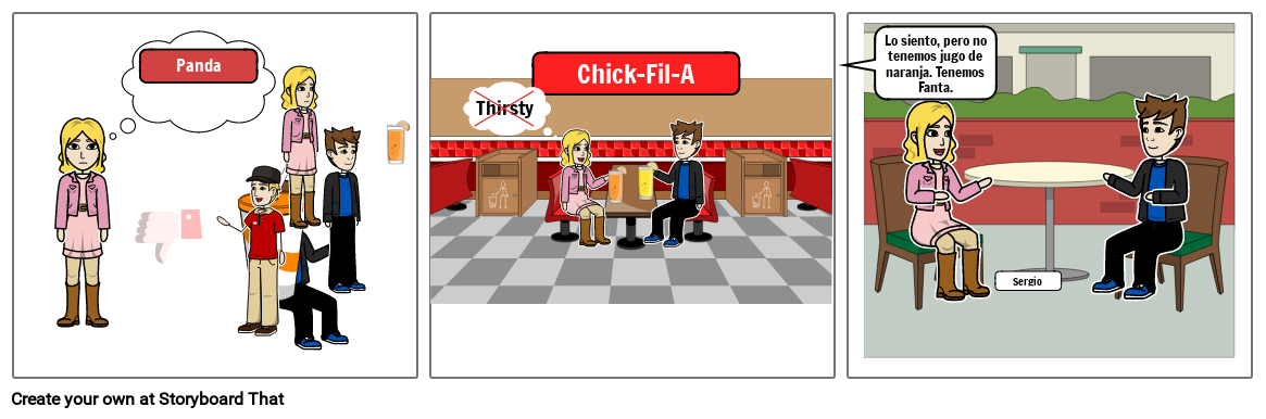 Lo siento, pero no tenemos jugo de naranja. Tenemos Fanta.
