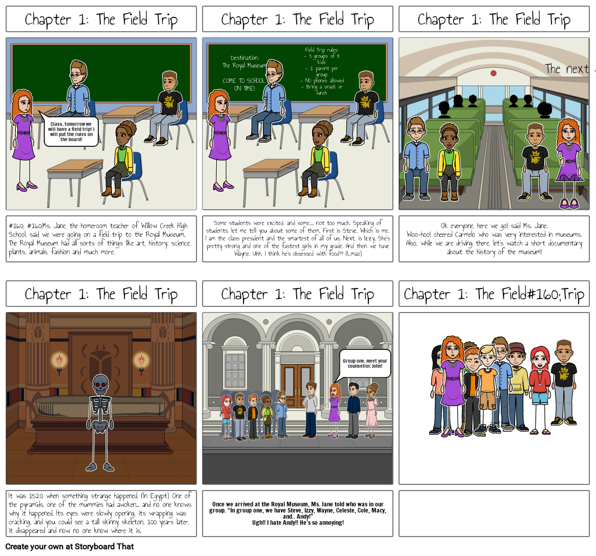 #160; #160;Ms. Jane, the homeroom teacher of Willow Creek High School, said we were going on a field trip to the Royal Museum. The Royal Museum had all sorts of things like art, history, science, plants, animals, fashion and much more.