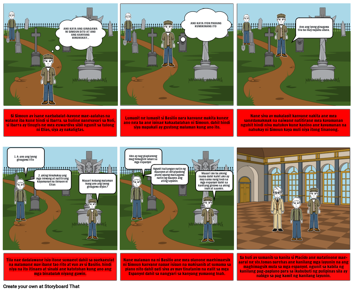 Nang malaman na ni Basilio ang mga planong maghimagsik ni Simoun kanyang napag isipan na makisanib at sumama sa plano nito dahil pati siya ay may tinatanim na galit sa mga Espanyol dahil sa nangyari sa kanyang yumaong Inah.