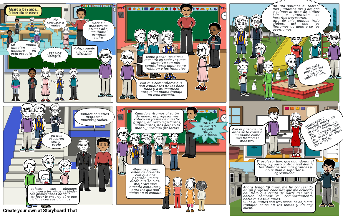 Ahora tengo 29 años, me he convertido en un profesor. Cada vez que me acuerdo del trato que recibí de parte del profe decido cambiar mi comportamiento hacia mis estudiantes.Si los alumnos son traviesos los dejo que trabajen solos en los temas y no doy clase.